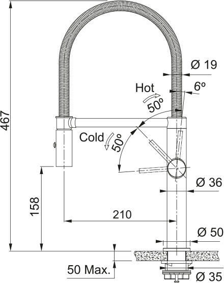 • Витяжний вилив з функцією душу