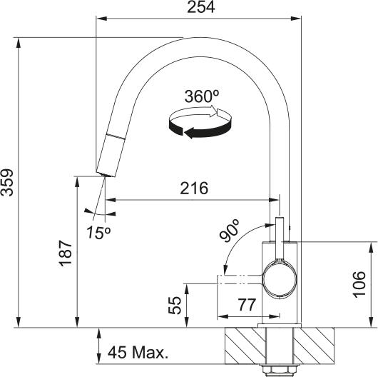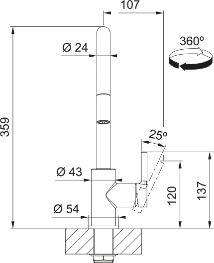 | Висота змішувача | 360 мм |
